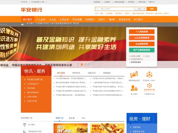 平安银行网页截图