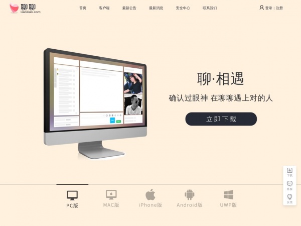聊聊(www.liaoliao.com聊聊网)是最早的免费语音**。聊聊视频**拥有高质量语音视频,帅哥美女**聊天、**,是同城交友、视频语音、免费聊天、k歌游戏的聊天平台。。